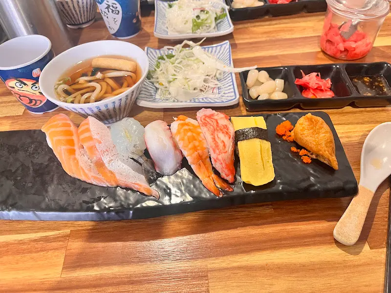 초밥이랑 같이 나온 우동도 진짜 맛있었어. 뜨끈한 국물이 초밥이랑 너무 잘 어울리더라. 면발도 탱글탱글하고, 국물 맛도 깊고 시원해서 계속 손이 갔어. 유부도 듬뿍 들어있어서 좋았고. 초밥 먹다가 살짝 느끼할 때 우동 국물 한 입 마시면 진짜 깔끔하게 입가심되는 느낌이었어.
