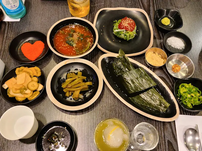 자리에 앉자마자 고민할 것도 없이 우대갈비 3인분을 주문했다. 고기엔 당연히 술이지! 맥주 두 병이랑 소주 두 병도 시원하게 추가했다. 숯불이 들어오고, 곧이어 밑반찬들이 쭉 깔리는데, 하나하나 정갈하고 맛깔스러워 보이는 게 기대감을 한껏 끌어올렸다. 특히 눈에 띄는 건 하트 모양으로 만들어진 젤리였어. 이런 귀여운 디테일까지 신경 쓴 점이 마음에 쏙 들었다. 참고)