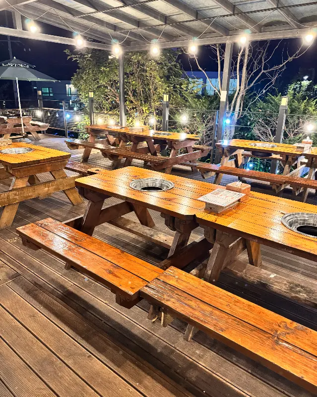 넓은 야외 테이블 좌석
