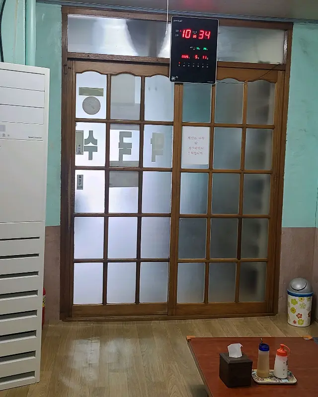 낡은 나무 창틀 너머로 언뜻 보이는 가게 안 풍경은, 마치 시간 여행을 떠나온 듯한 착각을 불러일으켰어. 디지털 시계가 10시 34분을 가리키는 오래된 미닫이문. 문을 열자 후끈한 열기와 함께 사람 냄새가 물씬 풍기는 공간이 펼쳐졌어. Yo, 여기가 바로 그 맛집인가? 기대감에 힙 엔진 풀파워 가동!
