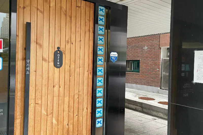 카페에 가까워질수록 은은하게 풍겨오는 커피 향이 저를 더욱 기대하게 만들었습니다. 마치 보물찾기라도 하듯 주변을 두리번거리며 마침내 커피몽타쥬를 발견했을 때, 그 첫인상은 기대 이상이었습니다. 나무 질감이 살아있는 문과 세련된 블랙 프레임의 조화가 고급스러움을 자아냈고, 입구에 부착된 블루리본 스티커들이 이곳이 단순한 카페가 아님을 증명하는 듯했습니다. 문을 열자 정중한 인사가 쏟아졌고, 따뜻하고 은은한 커피 향이 코끝을 간지럽히며 기분 좋게 저를 맞이했습니다.