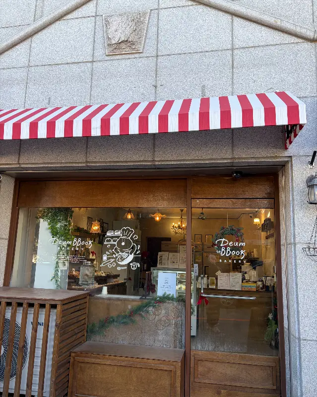 골목길을 따라 걷다 보니, 저 멀리서부터 빵 굽는 냄새가 코를 찔렀어. 드디어 찾았다! 빨간색과 흰색 줄무늬 차양이 쳐진 아담한 가게, “듬뿍”이라는 귀여운 글씨가 나를 반겨주었지. 문을 열고 들어서는 순간, 아늑한 분위기에 마음이 스르륵 녹아내리는 거 있지. 나무로 된 따뜻한 인테리어하며, 은은하게 빛나는 조명까지, 딱 내가 좋아하는 스타일이었어.