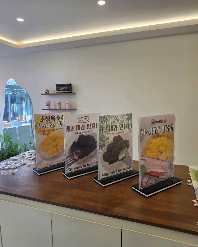 매장 앞에 도착하니까, 깔끔하고 아늑한 분위기가 확 느껴졌어. 은은한 조명 아래 진열된 떡들이 어찌나 맛있어 보이던지! 특히 카스테라 인절미 비주얼은 진짜…🤤 사진으로만 보던 걸 실제로 보니까 침샘 폭발 직전!