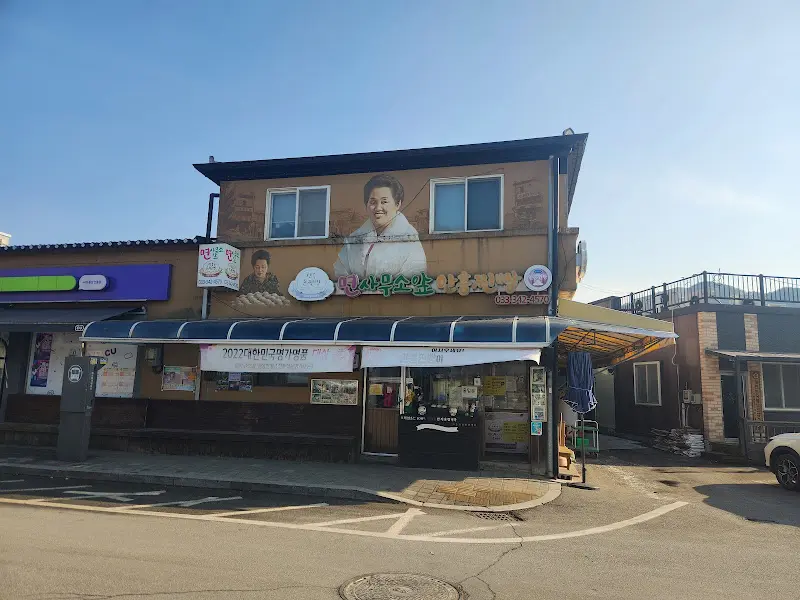 가게는 안흥찐빵거리 초입에 위치해 있어서 찾기도 쉬워. 파란 하늘 아래, “면사무소앞 안흥찐빵” 간판이 한눈에 들어오거든. 가게 앞에는 항상 손님들이 북적거리고, 갓 쪄낸 찐빵 냄새가 발길을 멈추게 해.