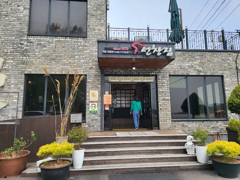 차가 멈춰 선 곳은 웅장한 벽돌 건물의 선창집 앞. 은은한 조명이 비추는 외관은 세월의 흔적과 함께 현대적인 감각이 어우러져 있었다. 마치 오랜 역사와 전통을 현대적인 감각으로 재해석한 듯한 느낌이었다. 입구로 향하는 계단 옆 화분에는 탐스러운 꽃들이 반겨주었고, 건물 외벽에는 커다란 글씨로 ‘鰻’ (장어 만) 자가 새겨져 있어 이곳이 장어 전문점임을 한눈에 알 수 있었다.