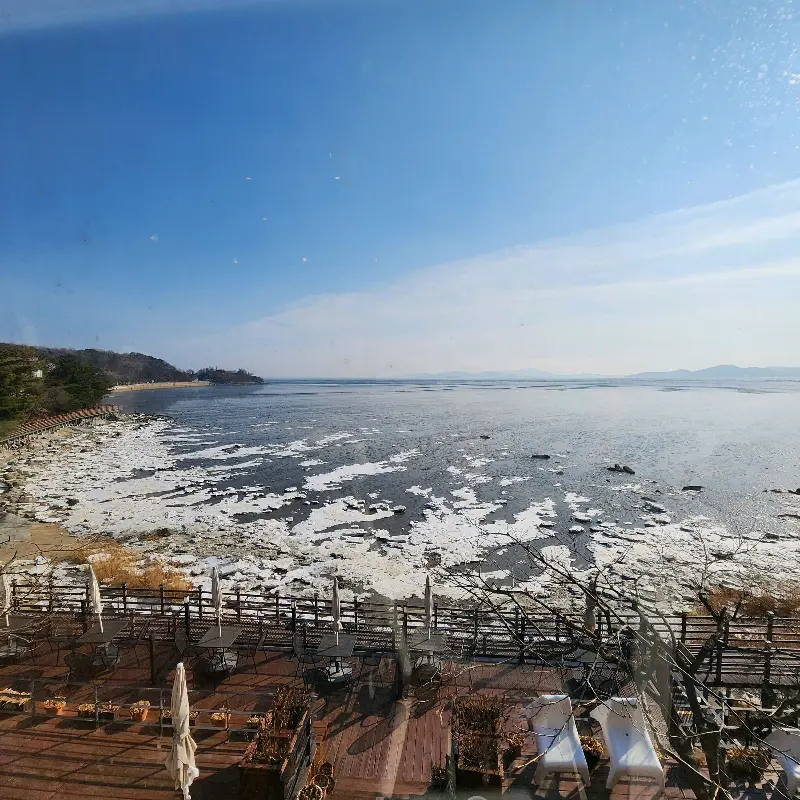 자리를 잡으려고 두리번거리는데, 창가 쪽 자리가 딱 하나 남았더라고. 럭키! 앉자마자 눈앞에 펼쳐지는 건… 크, 바로 이거지! 끝없이 펼쳐진 서해바다 뷰! 내가 갔을 때는 물이 쫙 빠져서 갯벌이 드러나 있었는데, 그것마저도 운치 있더라. 마치 한 폭의 그림 같은 풍경, 넋 놓고 바라봤지.