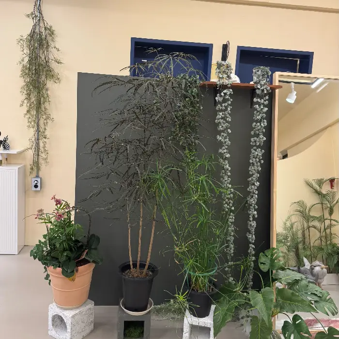 매장 곳곳에 자리한 싱그러운 식물들이 편안하고 이국적인 분위기를 더합니다.