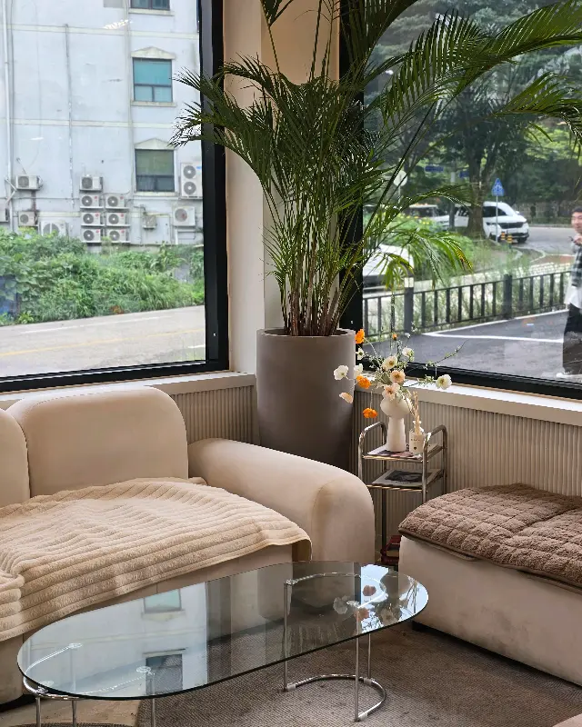 카페에 들어서자마자, 나의 눈을 사로잡은 것은 1, 2층으로 나뉜 넓고 아늑한 공간이었다. 천장에는 은은한 조명이, 벽면에는 감각적인 인테리어가 조화를 이루며 심리적 안정감을 주었다. 마치 잘 설계된 실험실처럼, 모든 요소들이 최적의 환경을 조성하기 위해 배치된 듯했다. 특히 통창 너머로 보이는 푸릇푸릇한 풍경은, 도심 속에서 지친 나의 시신경을 부드럽게 이완시켜 주는 듯했다.