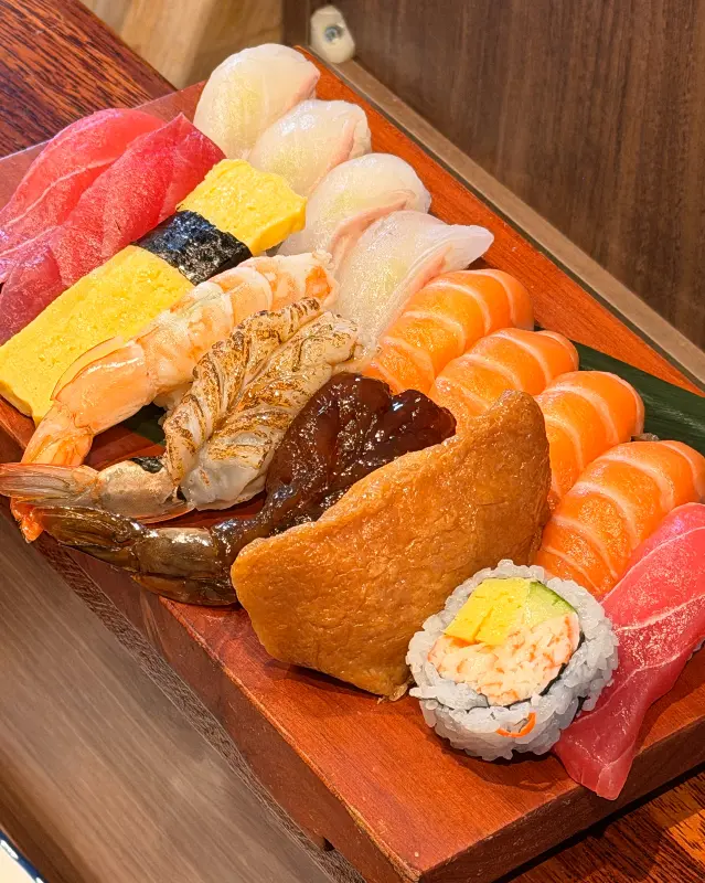 드디어 기다리고 기다리던 초밥이 나왔어. 윤기가 좔좔 흐르는 신선한 회가 큼지막하게 얹어진 초밥들을 보니, 눈으로 먼저 즐거워지는 기분이었지.