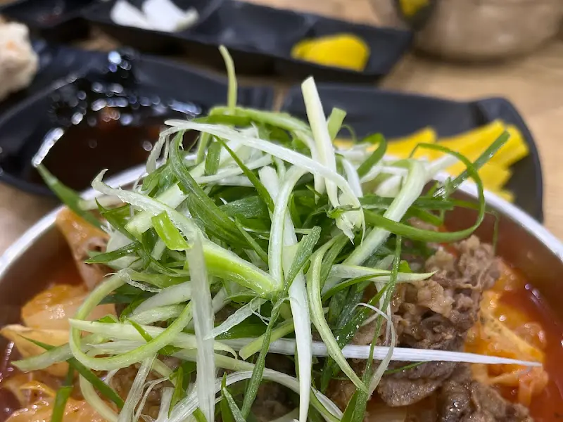 국물은 묵직하고 진한, 마치 사골 육수를 연상시키는 깊은 맛을 냈다. 하지만 단순히 묵직하기만 한 것이 아니라, 매콤함과 칼칼함이 더해져 느끼함을 잡아주었다. 캡사이신 성분이 TRPV1 수용체를 자극하며 통증과 쾌감을 동시에 선사하는, 전형적인 ‘매운맛의 역설’을 경험하는 순간이었다. 국물 속에는 차돌박이에서 우러나온 기름이 녹아들어, 풍부한 지방의 풍미를 더했다. 하지만 과도한 기름은 오히려 느끼함을 유발할 수 있다. 이 집은 파채를 듬뿍 넣어, 기름의 느끼함을 효과적으로 중화시켰다. 파의 알싸한 향은 지방의 풍미와 절묘하게 어우러져, 완벽한 맛의 균형을 이루었다.