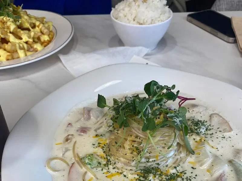 자리를 잡고 앉아 메뉴판을 펼쳐 들었다. 다양한 파스타와 곁들임 메뉴들이 눈길을 사로잡았다. 한참을 고민하다가, 나는 이곳의 대표 메뉴라는 크림 파스타와 매콤한 돈까스 떡볶이를 주문했다. 메뉴를 고르고 나니, 슬슬 배가 고파오기 시작했다. 식사가 나오기 전까지, 나는 창밖 풍경을 감상하며 설레는 마음을 달랬다.