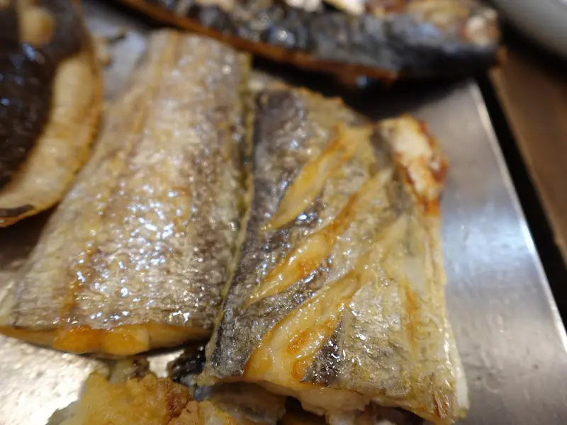 드디어 기다리고 기다리던 제철 생선구이 정식이 나왔습니다. 따뜻한 프라이팬 위에 올려진 생선구이는 지글거리는 소리를 내며 식욕을 자극했습니다. 고등어, 가자미, 갈치, 자연산 바닥대구… 하나하나 윤기가 흐르는 모습에 감탄했습니다.