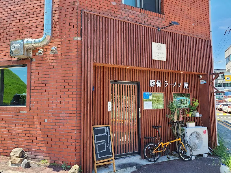 숙소에서 나와 몇 걸음 걷지 않아 붉은 벽돌 건물이 눈에 들어왔다. 간판에는 정갈한 글씨로 ‘돼지 뼈 라멘 집’이라는 문구가 쓰여 있었다. 나무로 된 외관은 따뜻하고 편안한 느낌을 주었고, 작은 칠판에는 메뉴가 적혀 있었다. 자전거 한 대가 가게 앞에 놓여 있는 모습은, 마치 일본의 작은 골목길에 있는 라멘집을 연상시켰다.