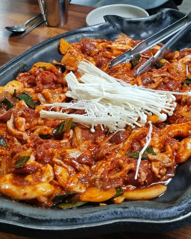 첫 맛은 매콤함, 곧이어 느껴지는 오리고기의 풍부한 육즙, 그리고 신선한 채소의 아삭함이 완벽한 조화를 이루었다. 양념은 결코 과하지 않아, 오리고기 본연의 맛을 해치지 않으면서도 깊은 풍미를 더했다. 쌈 채소에 오리고기와 겉절이, 마늘을 올려 크게 한 쌈을 먹으니, 입안 가득 행복이 퍼져 나갔다.