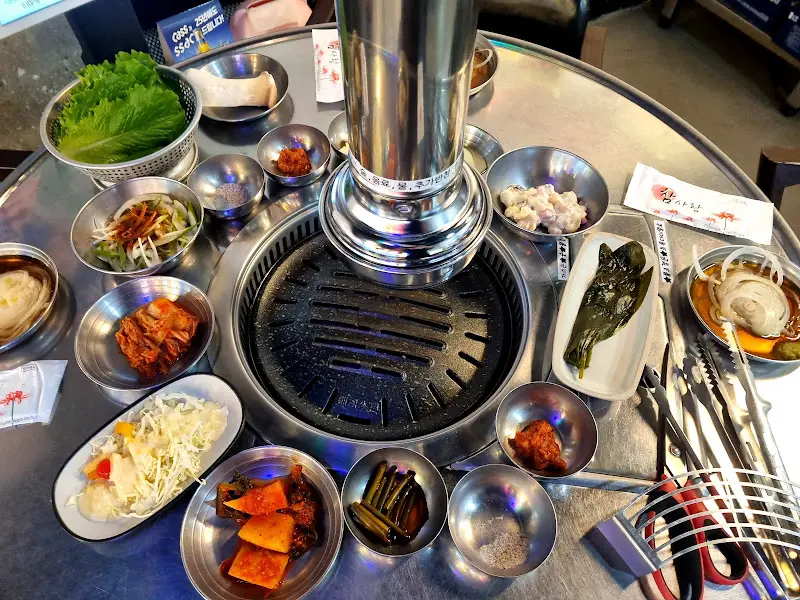 뿐만 아니라, 육도깨비는 밑반찬도 푸짐하게 제공된다. 쌈 채소는 기본, 콩나물무침, 김치, 쌈무 등 다채로운 반찬들이 테이블을 가득 채웠다. 특히, 밑반찬은 셀프바에서 자유롭게 가져다 먹을 수 있다는 점이 좋았다. 좋아하는 반찬을 마음껏 즐길 수 있으니, 이보다 더 좋을 순 없다! 셀프바에는 상추, 깻잎, 청양고추 등 신선한 채소들이 준비되어 있었지만, 종류가 아주 다양한 편은 아니었다. 하지만 고기와 함께 곁들여 먹기에 부족함은 없었다.