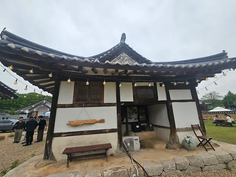 네비게이션이 안내하는 대로 굽이굽이 길을 따라 들어가니, 마치 시간이 멈춘 듯한 고즈넉한 풍경이 눈 앞에 펼쳐졌다. 드디어 ‘화수헌’에 도착! 탁 트인 넓은 주차장이 가장 먼저 눈에 들어왔다. 주차 걱정 없이 편안하게 카페를 즐길 수 있다는 점이 혼밥러에게는 정말 큰 메리트다. 차에서 내리자, 은은하게 풍겨오는 나무 향기와 함께 고택 특유의 고풍스러운 분위기가 온몸을 감쌌다. 마치 과거로 시간 여행을 온 듯한 기분!