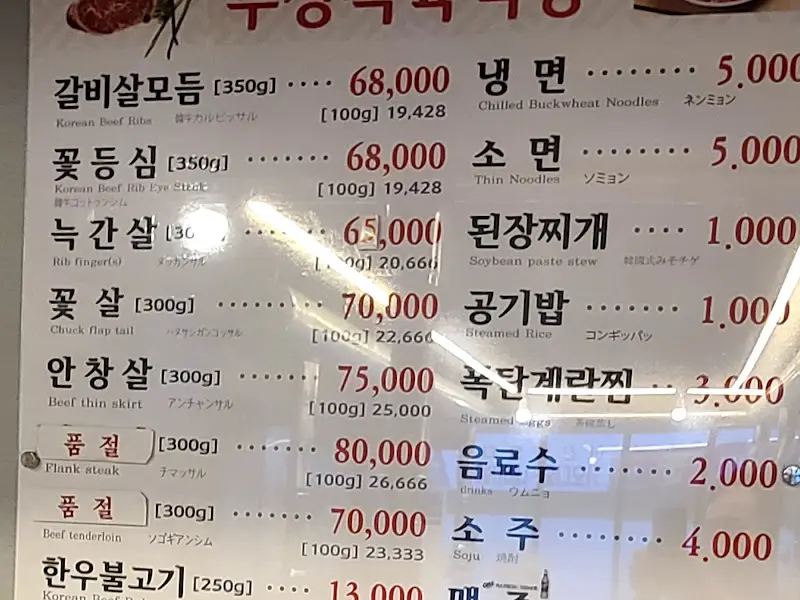 가격표를 보니, 부담 없이 한우를 즐길 수 있겠어!