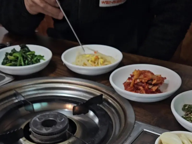 옆 테이블에서는 삼겹살을 구워 먹고 있더군요. 을 보니, 질 좋은 삼겹살과 마늘이 불판 위에서 지글지글 익어가는 모습이 어찌나 먹음직스럽던지. 다음에는 꼭 삼겹살을 먹어봐야겠다고 다짐했습니다.