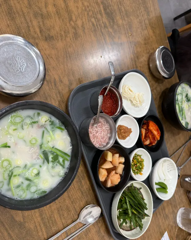 돼지국밥 국물부터 한 숟갈 떠먹어 봤지. 아, 이 맛이야! 진하고 깊은 국물이 속까지 따뜻하게 풀어주는 느낌. 돼지 특유의 잡내는 하나도 없고, 깔끔하면서도 담백한 맛이 정말 좋았어. 마치 어머니가 정성껏 끓여주신 사골 국물처럼, 깊고 구수한 맛이 났어.