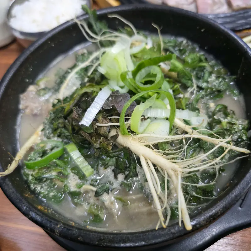 싱싱한 냉이가 뚝배기 위를 초록빛으로 가득 덮고 있는데, 향긋한 냉이 향이 코를 찌르는 것이, 벌써부터 입안에 침이 고이더라. 국물 한 숟갈 떠먹으니, 이야… 이거 완전 보약이 따로 없더라. 냉이 특유의 시원하고 쌉쌀한 맛이 진한 순대국 국물과 어우러지는데, 속이 확 풀리는 기분이었어.