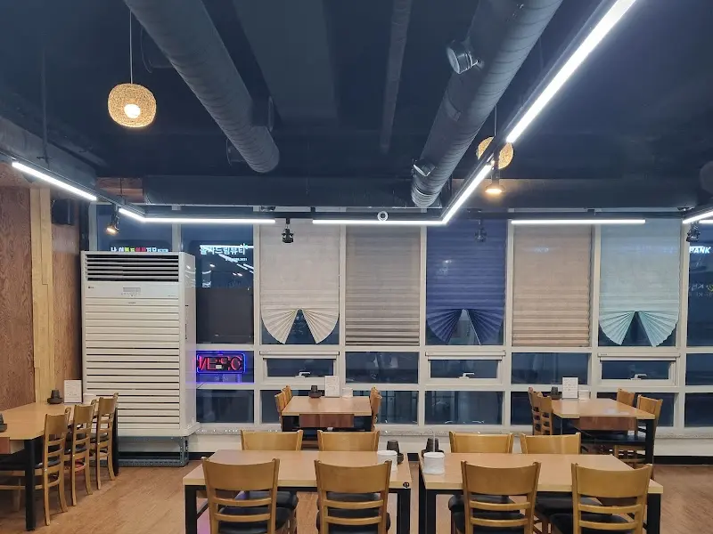 주차장에 차를 대고 안으로 들어서니, 홀이 아주 널찍하니 좋더라고. 천장에 매달린 조명갓은 따뜻한 색감으로 은은하게 빛나고, 테이블 간 간격도 넉넉해서 편안하게 식사할 수 있겠더라. 벽 한쪽에는 사진들이 쭉 걸려있는데, 마치 시골집에 온 듯한 푸근한 느낌이 들었어.