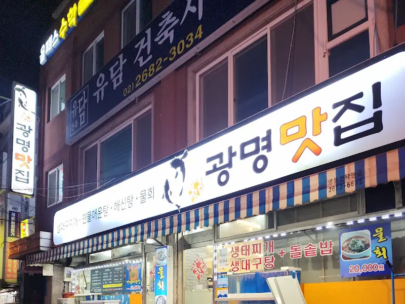 유담집의 위치는 광명시장 근처 골목길에 위치하고 있다. 찾기가 쉽지 않을 수도 있지만, 숨겨진 보석을 찾는다는 생각으로 방문하면 더욱 즐거울 것이다. 간판에 크게 쓰여진 “광명맛집”이라는 문구가 왠지 모르게 믿음직스럽다.