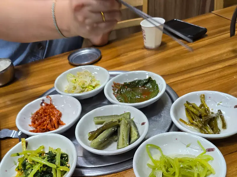 문을 열자, 정겨운 풍경이 눈앞에 펼쳐졌다. 테이블 위에는 이미 푸짐한 밑반찬들이 차려져 있었는데, 마치 어머니가 손수 만들어 주신 듯한 따뜻함이 느껴졌다. 윤기가 자르르 흐르는 콩나물 무침, 짭짤하면서도 고소한 깻잎 장아찌, 그리고 아삭한 식감이 살아있는 오이무침까지, 하나하나 정성이 가득 담긴 반찬들이었다. 특히, 직접 띄운 청국장의 깊은 향이 식욕을 자극했다.
