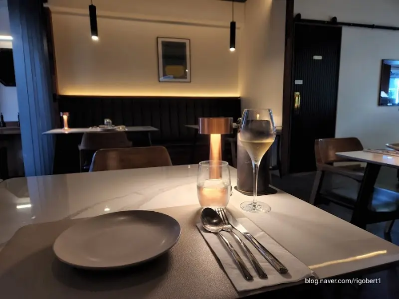 반지하 공간이라는 사실이 무색하게, 문을 열고 들어선 순간 따뜻하고 아늑한 기운이 온몸을 감쌌다. 은은한 조명이 테이블 위를 비추고, 벽돌과 나무로 꾸며진 인테리어는 편안하면서도 세련된 분위기를 자아냈다. 앤티크한 가구와 소품들이 공간 곳곳에 놓여있어 마치 유럽의 작은 레스토랑에 와 있는 듯한 착각마저 들었다. 에서 보았던 테이블 세팅처럼, 정갈하게 놓인 식기와 와인잔은 곧 펼쳐질 미식 경험에 대한 기대감을 한껏 고조시켰다.