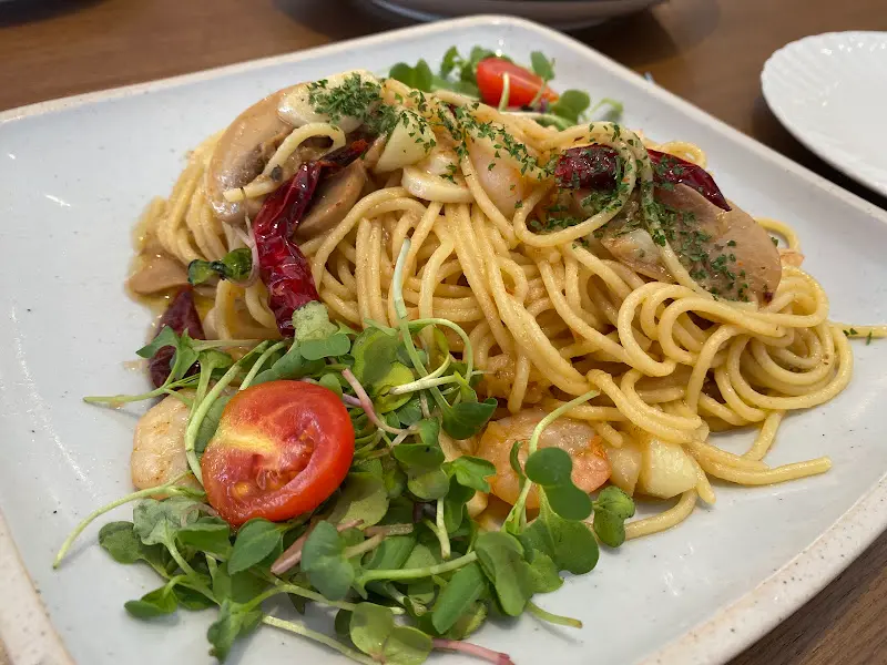 고민 끝에 선택한 것은 알리오 올리오 파스타. 접시 위에 놓인 파스타는 단순해 보였지만, 올리브 오일의 윤기와 마늘의 향긋함이 코를 찔렀다. 한 입 맛보니, 면은 적당히 잘 삶아져 쫄깃했고, 올리브 오일과 마늘의 풍미가 입안 가득 퍼져 나갔다. 과하지 않은 간은 재료 본연의 맛을 더욱 돋보이게 했다. 곁들여진 채소는 신선함을 더해주어, 파스타의 느끼함을 잡아주는 역할을 했다.
