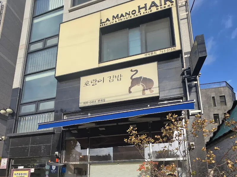 어스름한 저녁, 오래된 골목길을 따라 걷는 발걸음은 묘한 설렘으로 가득 찼다. 오늘 나의 목적지는 ‘호랑이김밥’. 낡은 건물 외벽에 걸린 호랑이 그림 간판이 정겹다. 프리미엄 김밥이라는 문구가 수수한 간판 옆에 쓰여 있는 것이 어딘가 모르게 이질적이면서도 흥미로웠다.