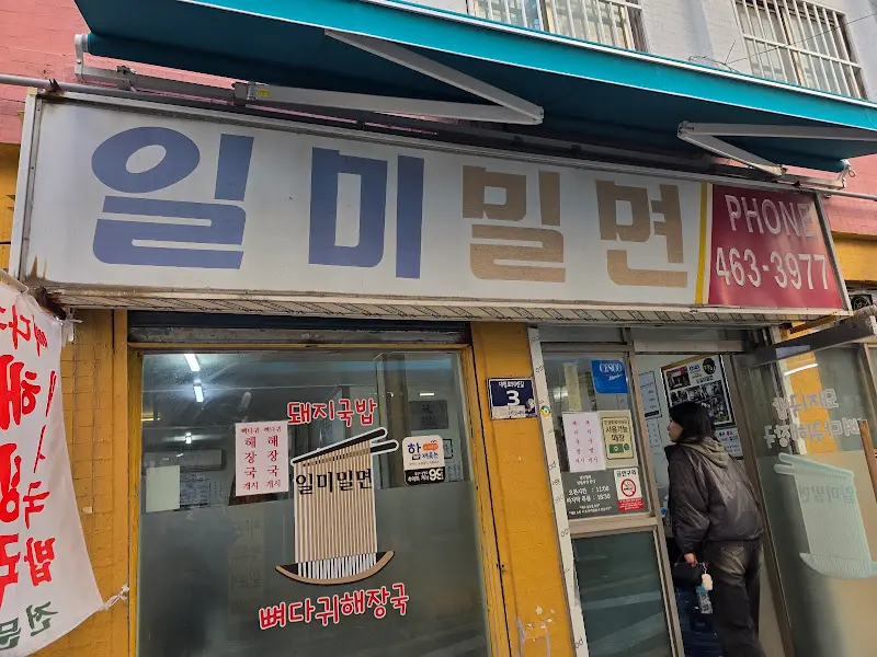 골목길 안쪽에 자리 잡은 일미밀면 가게 외관은, 마치 숨겨진 보물을 발견한 듯한 기분을 선사했다. 낡은 건물과 간판은 세월의 흔적을 고스란히 담고 있었지만, 그 안에는 맛있는 밀면과 따뜻한 정이 가득했다.