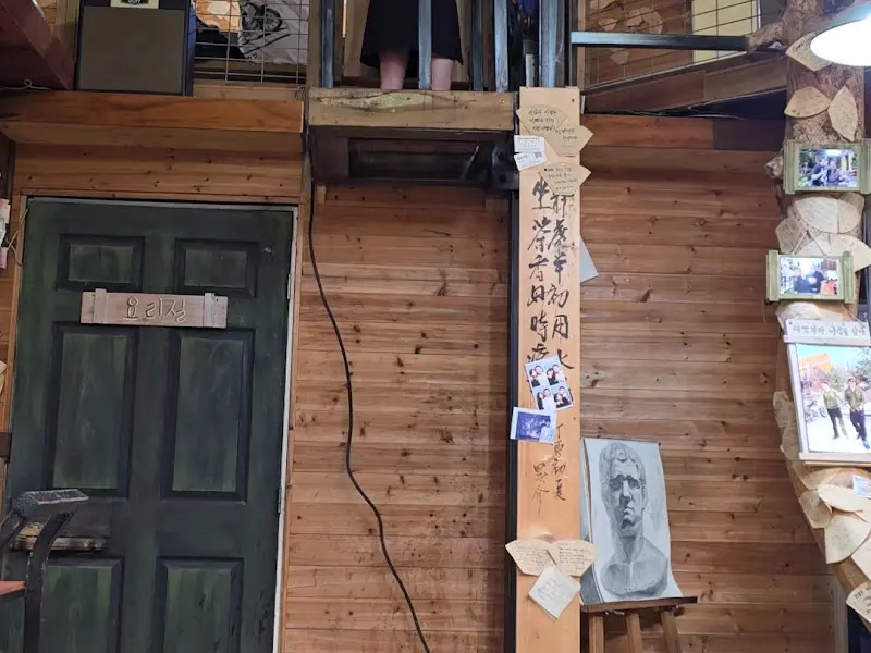 카페 내부는 예상보다 훨씬 넓었고, 테이블 간 간격도 넉넉해서 편안하게 시간을 보낼 수 있었습니다. 나무로 된 벽면에는 손으로 직접 그린 그림과 사진들이 걸려 있었고, 낡은 오디오에서는 잔잔한 음악이 흘러나왔습니다. 마치 어린 시절 할머니 댁에 놀러 온 듯한 포근함이 느껴졌습니다. 천장에는 오래된 카메라와 램프, 바이크 부품들이 매달려 있어 독특한 분위기를 더했습니다. 궤짝이라는 이름에 걸맞게, 카페 곳곳에는 낡은 나무 상자들이 쌓여 있었는데, 그 안에는 어떤 이야기가 담겨 있을지 궁금증을 자아냈습니다.