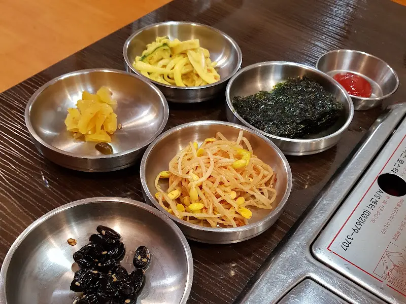 주문을 마치니, 밑반찬이 쫙 깔리는데… 이야, 종류가 꽤 다양하더라고. 콩나물 무침, 김, 어묵볶음 등등. 특히 구운 김이 눅눅하지 않게 조금씩 담겨 나오는 게 인상적이었어. 이런 세심한 배려, 완전 칭찬해! 예전에 왔을 땐 밑반찬이 좀 부실했던 것 같은데, 오늘은 완전 만족스러웠어. 역시, 손님들의 의견을 잘 반영하는 곳인가 봐.