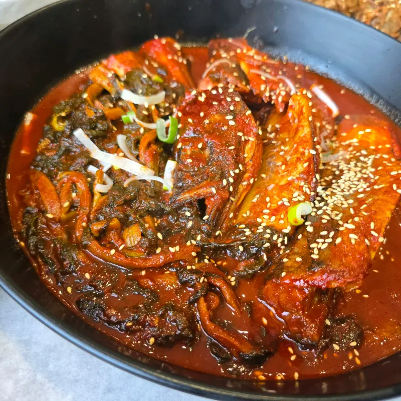 특히 시래기 코다리찜은 진짜 예술이었어. 큼지막한 코다리 위에 시래기가 듬뿍 올라가 있는데, 매콤하면서도 깊은 양념 냄새가 코를 자극하더라. 시래기는 어찌나 부드러운지, 입에 넣자마자 사르르 녹는 느낌이었어. 코다리 살도 엄청 통통하고 쫄깃해서, 씹는 맛이 정말 좋았어.
