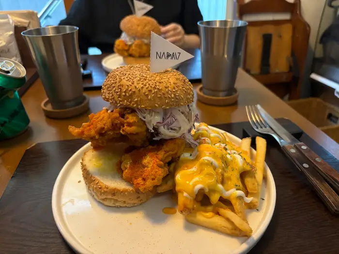 비프 버거도 궁금해서 나중에 시켜봤는데, 이것도 역시 맛있었어요. 근데 개인적으로는 치킨 버거에 비해 고기 양이 살짝 적게 느껴지더라고요. 물론 맛은 훌륭했지만, 워낙 치킨 버거가 임팩트가 강해서 그런가 싶기도 하고요. 그래도 뭘 시켜도 후회는 없을 것 같아요. 정말 ‘뭘 먹어도 성공’이라는 말이 딱 어울리는 곳이었어요.