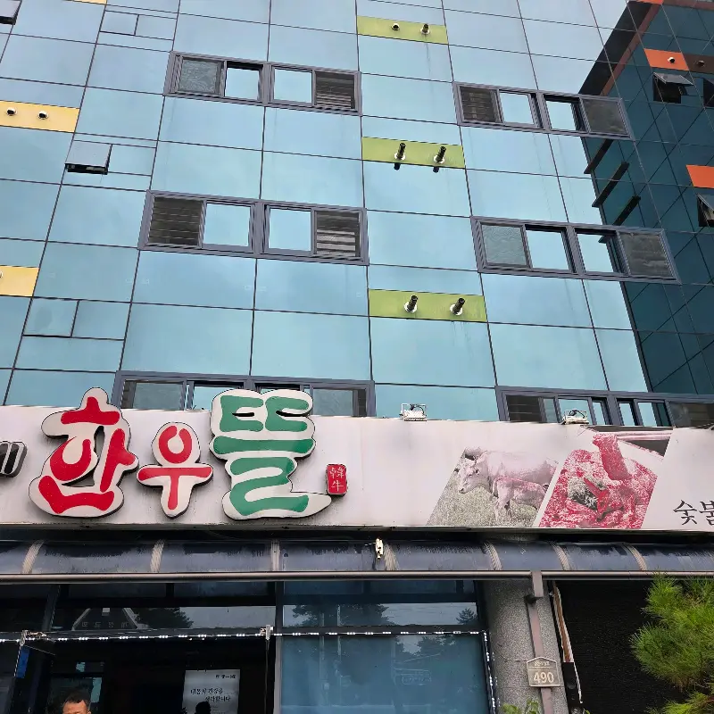 가게 앞에 다다르니 넓은 주차장이 눈에 띄었다. 주차 공간이 넉넉해서 편안하게 주차할 수 있었다. 주차를 하고 내리니, 멀리서도 한눈에 보이는 ‘한우뜰’ 간판이 시선을 사로잡았다. 건물 외관은 세월의 흔적이 느껴졌지만, 그만큼 오랫동안 이 자리에서 사랑받아온 맛집이라는 믿음이 갔다.