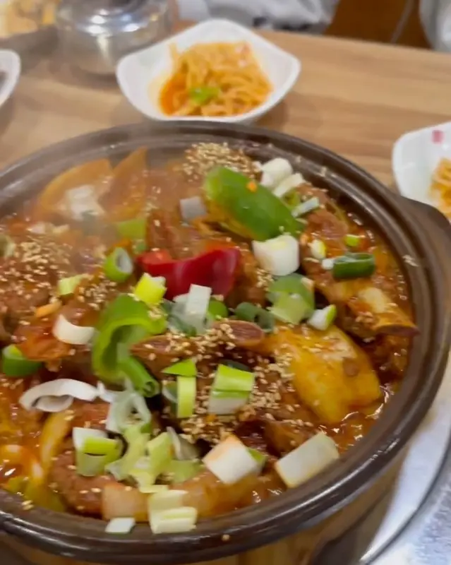 드디어 기다리고 기다리던 갈비찜이 나왔다. 뚝배기 가득 담긴 갈비찜은 보기만 해도 먹음직스러웠다. 빨간 양념에 윤기가 좌르르 흐르는 갈비찜 위에는 파와 깨가 듬뿍 뿌려져 있었다. 매콤한 향이 코를 찌르는 것이, 정말이지 참을 수 없는 비주얼이었다.