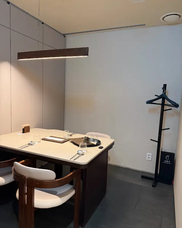 더케이트윈 타워 지하 1층에 자리 잡은 우아라는 입구부터 고급스러움이 물씬 풍겼어. 은은한 조명과 차분한 인테리어가 마음을 편안하게 만들어주더라. 특히, 모든 좌석이 프라이빗 룸으로 되어 있다는 점이 가장 마음에 들었어. 요즘처럼 조용하게 식사하고 싶을 때 딱이잖아. 룸으로 안내받으니 아늑하고 오붓한 분위기가 더욱 좋았어. 룸 안에는 은은한 향기가 감돌고, 테이블 세팅도 깔끔하게 되어 있어서 기분 좋게 식사를 시작할 수 있었지.