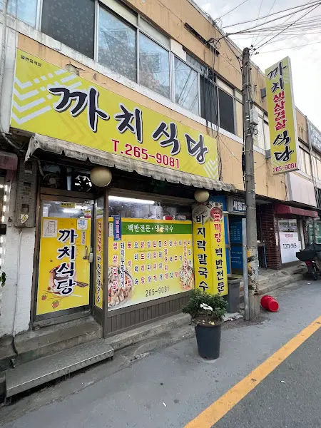 가게 앞에 다다르니, 정겨운 노란색 간판이 가장 먼저 눈에 들어왔다. 간판에는 큼지막한 글씨로 ‘까치식당’이라 적혀 있고, 그 옆에는 전화번호와 함께 메뉴 사진이 붙어 있었다. 마치 오래된 친구 집에 방문하는 듯한 편안한 느낌이랄까. 커다란 간판 글씨체는 세월의 흔적을 고스란히 담고 있는 듯했지만, 어딘지 모르게 친근하고 푸근한 인상을 풍겼다. 커다란 창문 너머로 보이는 따뜻한 불빛은, 지친 나그네를 포근하게 감싸 안아줄 것만 같았다.