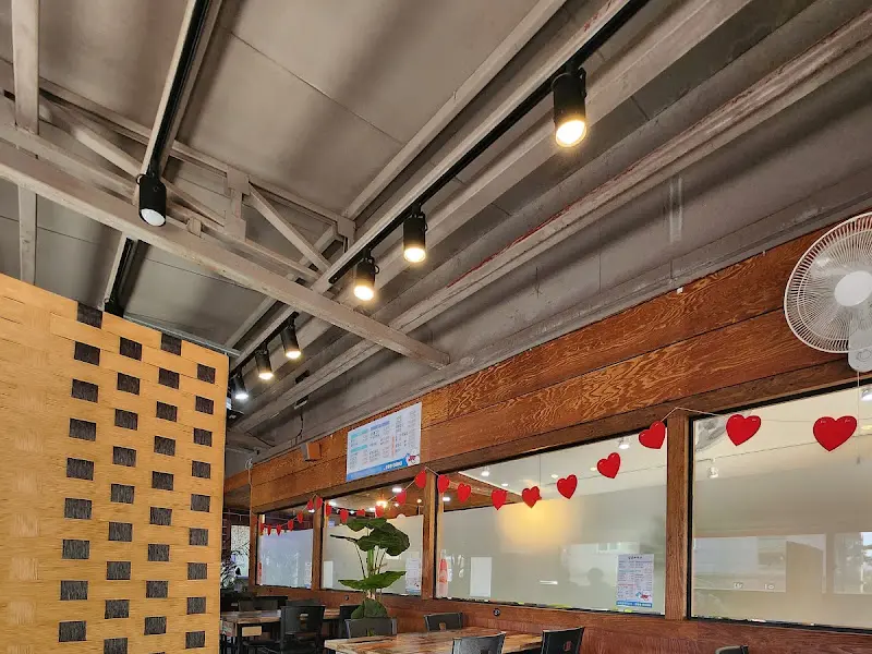 가게 문을 열고 들어서자, 예상외로 세련된 분위기가 나를 맞이했다. 은은하게 울려 퍼지는 음악 소리와 함께, 깔끔하게 정돈된 홀 내부가 편안함을 더했다. 나무 테이블과 의자는 따뜻한 느낌을 주었고, 창밖으로 보이는 풍경은 한 폭의 그림 같았다. 천장에는 검은색 레일 조명이 설치되어 있었고, 창가에는 하트 모양의 장식이 드리워져 있어, 전체적으로 아늑하고 사랑스러운 분위기가 느껴졌다.