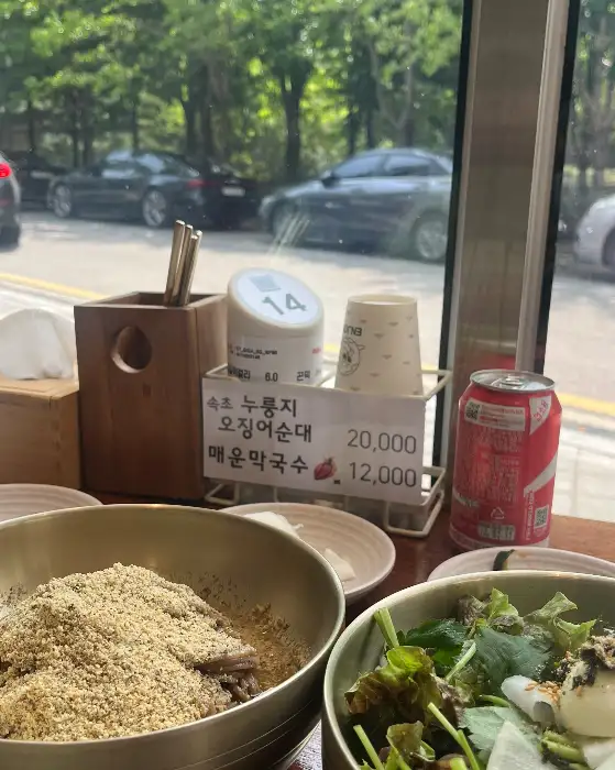 무엇을 먼저 맛봐야 할지 행복한 고민에 빠졌습니다. 메뉴판을 훑어보니 막국수의 종류만 해도 여러 가지였습니다. 가장 기본이 되는 물막국수, 비빔막국수부터 시작해 이 집의 시그니처라고 할 수 있는 들깨막국수, 곤드레막국수까지, 각 메뉴마다 어떤 특별함이 숨어있을지 궁금증을 자아냈습니다. 하지만 역시 이곳을 찾은 많은 분들이 엄지척을 보낸 메뉴는 단연 ‘들깨막국수’였습니다. 저 역시 이 메뉴를 선택하지 않을 수 없었습니다. 더불어 수육, 오징어순대, 만두 등 곁들임 메뉴도 빼놓을 수 없었기에, 푸짐하게 주문을 마쳤습니다.