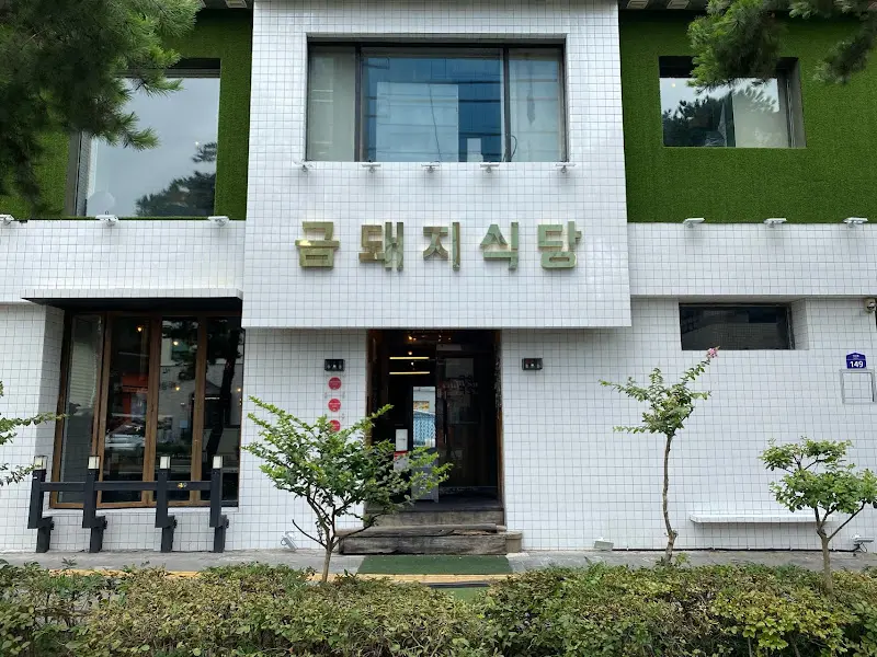 약수역과 청구역 사이, 눈에 띄는 하얀색 건물에 금색 글씨로 큼지막하게 적힌 “금돼지식당” 간판이 보인다. 멀리서 봐도 ‘나 맛집이오’ 하는 아우라가 뿜어져 나오는 듯하다. 건물 외벽에는 인조 잔디가 부분적으로 시공되어 있어 독특한 느낌을 준다. 마치 미식의 정원에 들어서는 듯한 기분이랄까?