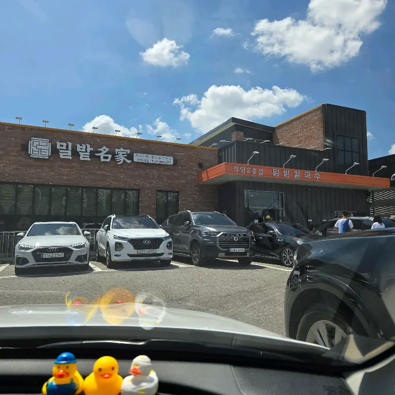 차가운 공기를 가르며 도착한 밀밭칼국수는 생각보다 훨씬 웅장한 모습이었다. 넓은 주차장은 이미 차들로 가득 차 있었고, 붉은 벽돌로 지어진 건물은 왠지 모를 따뜻함과 정겨움을 풍겼다. 건물 외벽에 걸린 ‘밀밭명가’라는 간판은 오랜 세월 동안 이 자리를 지켜온 듯 굳건해 보였다.