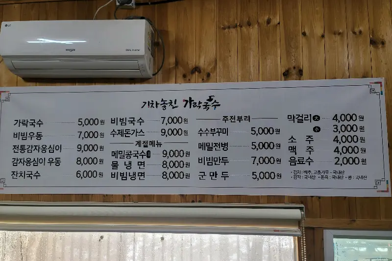 참, 여기 가락국수는 5천 원밖에 안 하는데 양도 어찌나 푸짐한지! 게다가 돈까스, 메밀전병, 비빔만두, 잔치국수, 감자옹심이, 막걸리까지 메뉴도 다양해서, 여럿이 함께 가서 이것저것 시켜 먹는 재미도 쏠쏠할 것 같아. 아이들이 좋아하는 돈까스도 있으니, 가족 단위로 방문하기에도 좋을 거야.