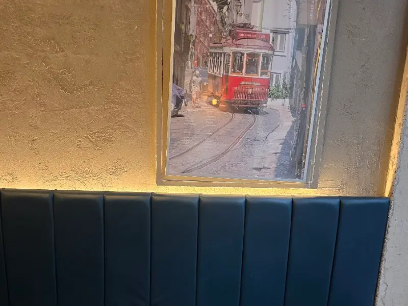 스톤스트릿 내부, 붉은 트램 그림 액자가 인상적이다.