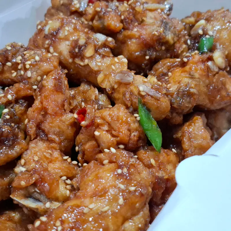 순살이라 그런지, 닭고기 전체에 마늘 소스가 더욱 깊숙이 배어 있는 느낌이었다. 겉은 바삭하고 속은 촉촉한 닭고기의 식감은 여전했고, 씹을수록 터져 나오는 육즙은 정말 훌륭했다. 특히, 마늘 소스에 버무려진 튀김옷은 그 자체로도 훌륭한 요리였다.
