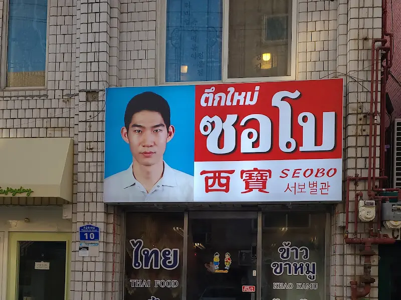 어스름한 저녁, 송리단길을 걷는 발걸음은 설렘으로 가득 찼다. 오늘 향할 곳은 몇 번이고 웨이팅에 좌절했던 ‘서보’였다. 낡은 간판이 오히려 시선을 사로잡는 곳, 그곳에서 나는 태국의 맛을 경험할 수 있다는 기대감에 부풀어 있었다. 간판에는 낯선 태국어와 함께 ‘SEOBO’라는 영문이 적혀 있었고, 그 아래 작게 ‘서보별관’이라는 문구가 숨어 있었다. 마치 숨겨진 보물을 찾아 나서는 듯한 기분이었다.