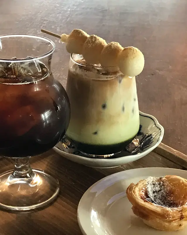 다음으로 맛본 메뉴는 말차 라떼였습니다. 평소 말차를 즐겨 마시는 저에게 월향재의 말차 라떼는 기대 이상의 맛을 선사했습니다. 6,500원이라는 가격이 믿기지 않을 정도로 진한 말차의 풍미가 느껴졌고, 쌉쌀하면서도 부드러운 맛이 완벽한 조화를 이루었습니다. 특히, 라떼 위에 앙증맞게 올려진 당고 꼬치는 시각적인 즐거움까지 더해주었습니다.