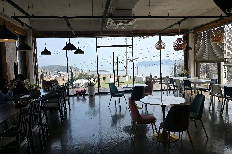 문을 열고 들어선 내부는 생각보다 훨씬 넓고 쾌적했다. 통유리창 너머로 펼쳐지는 시원한 바다 풍경은 그 자체로 훌륭한 예술 작품이었다. 은은한 조명과 차분한 인테리어는 편안하고 아늑한 분위기를 자아냈다. 잠시 기다리는 동안, 나는 창밖 풍경에 넋을 놓고 있었다. 잔잔한 파도 소리와 시원한 바닷바람이 마음을 평온하게 만들었다.