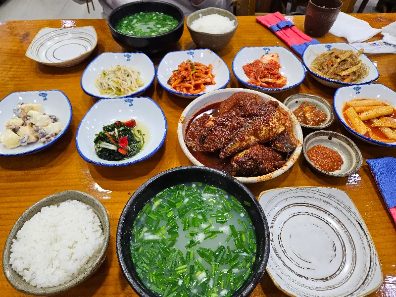 기다리는 동안 주변을 둘러봤는데, 오래된 식당의 정겨운 분위기가 물씬 풍겼어. 드디어 문이 열리고, 기대감을 안고 안으로 들어갔지. 테이블에 앉자마자 따뜻한 물수건과 함께 메뉴판을 가져다주시는데, 뭘 먹을까 고민할 필요도 없이 ‘재첩국 정식’을 주문했어. 고등어조림도 놓칠 수 없으니까!